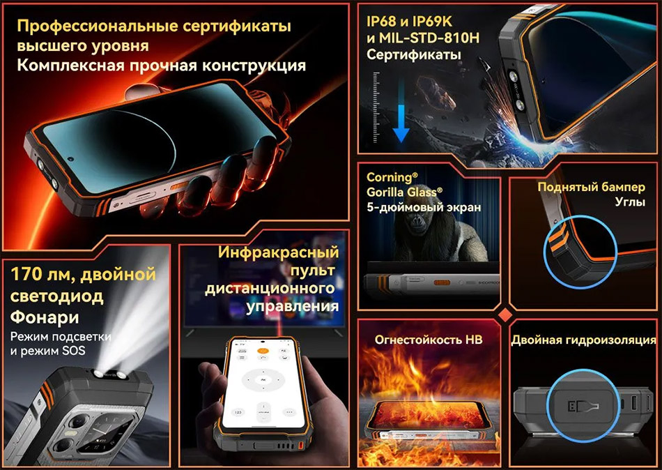 - Прошел испытания на ударопрочность по стандарту MIL-STD-810H