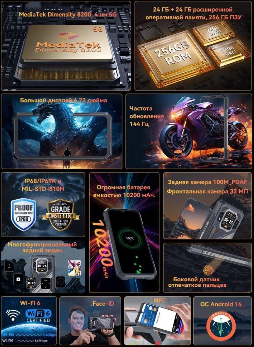 - Высокоэффективный процессор MediaTek 8200 5G 4нм