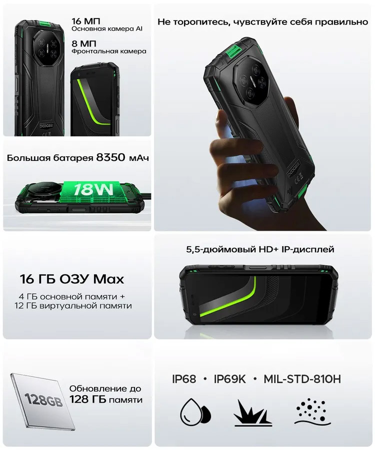 - Прошел испытания на ударопрочность по стандарту MIL-STD-810H