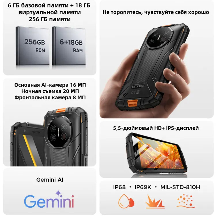 - Прошел испытания на ударопрочность по стандарту MIL-STD-810H