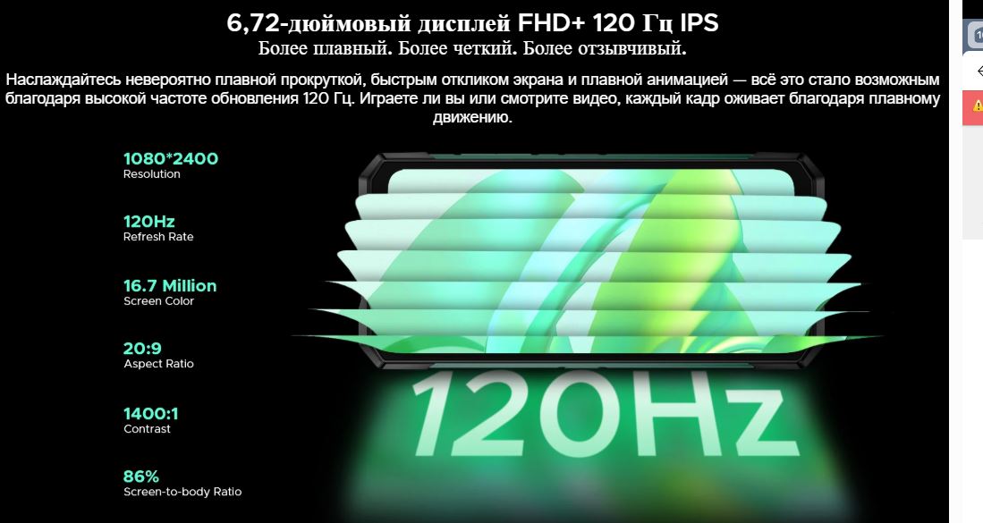 - 6,72-дюймовый FHD+ IPS-дисплей счастотой обновления 120 Гц